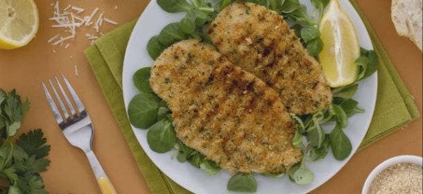 Aggiungete sale, pepe e mescolate il tutto. Prendete la carne messa da parte e passatele nella panatura premendo bene con le mani per far aderire al meglio tutto il composto. Cuocete la carne per dieci-quindici minuti girandola a metà cottura per ottenere che le fette di carne siano ben grigliate da entrambi i lati. Se preferite potete cuocere il tutto in forno a centonovanta gradi per quindici minuti. Infine spremete il succo di limone sulla cotoletta e servitela accompagnata da verdure.