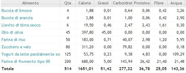 Calorie/Valori Nutrizionali