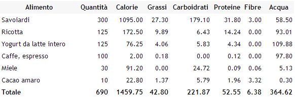 Calorie/Valori Nutrizionali