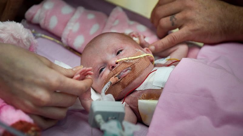Un bambina è nata con il cuore fuori dal petto e i medici, per permetterle di sopravvivere, tentano tre interventi record: come sta la piccola.